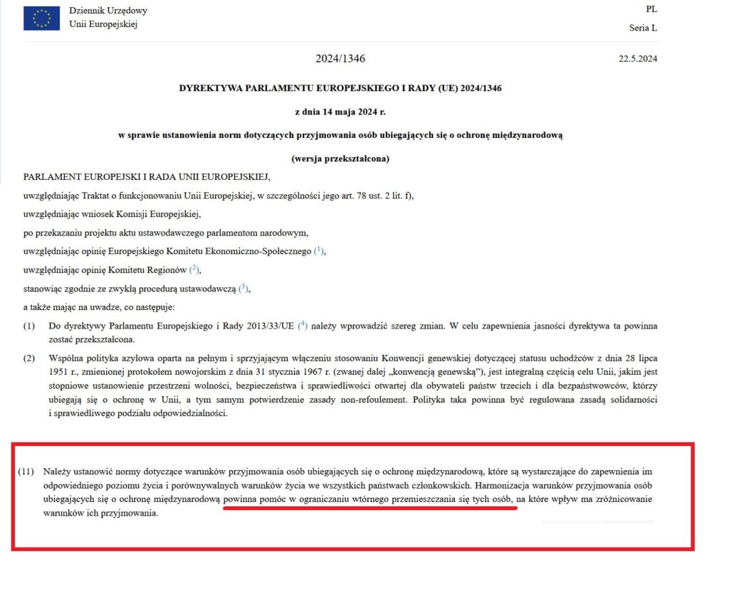 Wedle pojawiających się informacji, zgodnie z przepisami UE, które właśnie wchodzą w życie, państwa członkowskie miałyby zapewniać nielegalnym imigrantom „odpowiednie” warunki życia. Pomijając fakt samej kwestii tego, dlaczego osoba przebywająca w Europie nielegalnie miałaby być uprawniona do jakichkolwiek pieniędzy podatników, clou w wysokości tegoż poziomu życia.