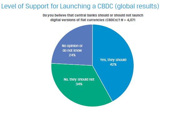 Ta ostatnia perspektywa jawi się instytucjom finansowym oraz rynkowym „profesjonalistom” na tyle mało zachęcająca, iż jedna trzecia z nich w ogóle sprzeciwia się pomysłowi emisji CBDC, kolejna zaś jedna czwarta dyplomatyczne wykręca się brakiem zdania lub wiedzy na ten temat. Rynkowi profesjonaliści – i naprawdę mieliby na ten temat nie mieć wiedzy ani opinii…?