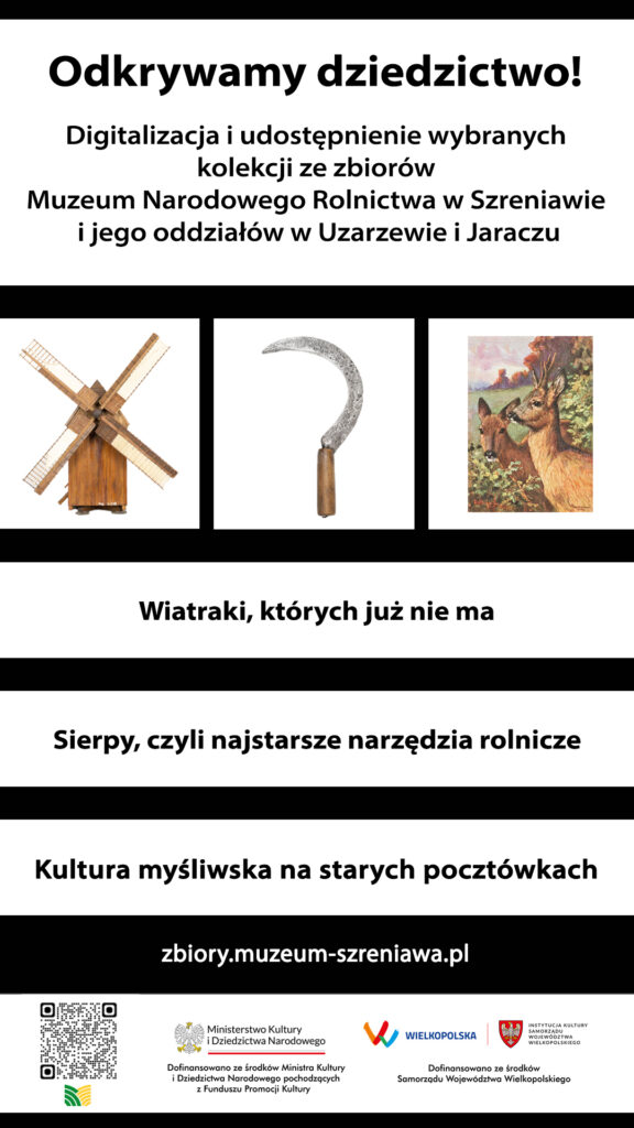 W roku 2025 w ramach realizacji zadania Odkrywamy dziedzictwo! Kultura myśliwska na starych pocztówkach – Modele wiatraków, których już nie ma – Sierpy, czyli najstarsze narzędzia rolnicze. Digitalizacja i udostępnienie wybranych kolekcji ze zbiorów Muzeum Narodowego Rolnictwa w Szreniawie i jego oddziałów w Uzarzewie i Jaraczu wzbogacono portal o kolejne 303 obiekty. Udostępniono 200 najcenniejszych i najciekawszych pocztówek przyrodniczych ze zbiorów Muzeum, pochodzących w przeważającej większości z początków XX w.(najstarsza z 1901 r., a najmłodsza z połowy XX w.), 43 modele wiatraków autorstwa inż. Feliksa Klaczyńskiego (1900-1987) wykonane w połowie XX w. oraz kolekcję 60 ręcznych narzędzi żniwnych – sierpów.