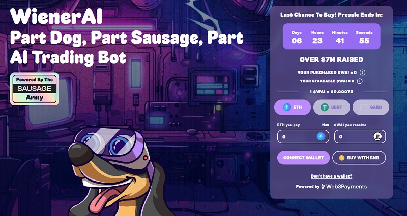 WienerAI jest projektem stworzonym w ekosystemie Ethereum. Nie jest to zwykły memecoin, ale połączenie waluty memowej ze sztuczną inteligencją. Twarzą projektu jest cybernetyczny jamnik o zmienionym kodzie DNA. Co jednak ważniejsze, WienerAI niesie w sobie korzyści wynikające z zastosowania AI.