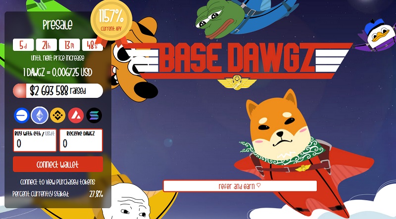 Zachętą do inwestowania w projekt jest także możliwość generowania dochodu pasywnego. Aktualnie roczna stopa zwrotu APY przekracza 1150 proc. Na obecnym etapie fazy przedsprzedaży za token $DAWGZ zapłacić trzeba 0,006725 USD. Twórcom udało się już zebrać blisko 2,7 mln USD.