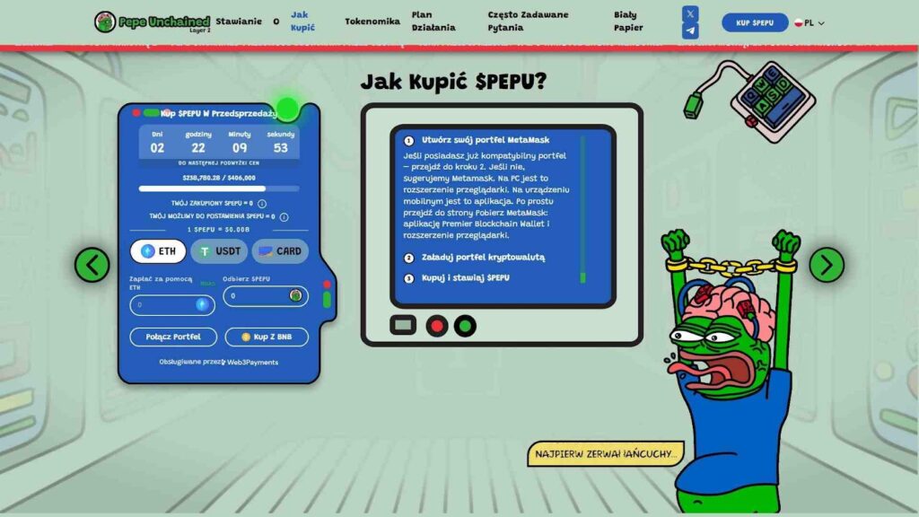 Aby dołączyć do przedsprzedaży Pepe Unchained, wykonaj następujące kroki: