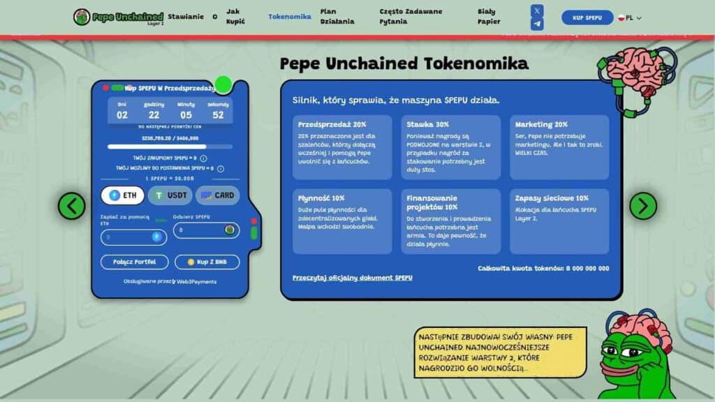 Projekt Pepe Unchained gwałtownie przyciągnął uwagę społeczności kryptowalutowej, a dużą rolę odgrywa w tym popularność mema i kryptowaluty Pepe. Wciągająca narracja i innowacyjne wykorzystanie technologii warstwy 2 dobrze się przyjęły wśród entuzjastów monet memowych, co napędza dalszą adopcję i inwestycje.
