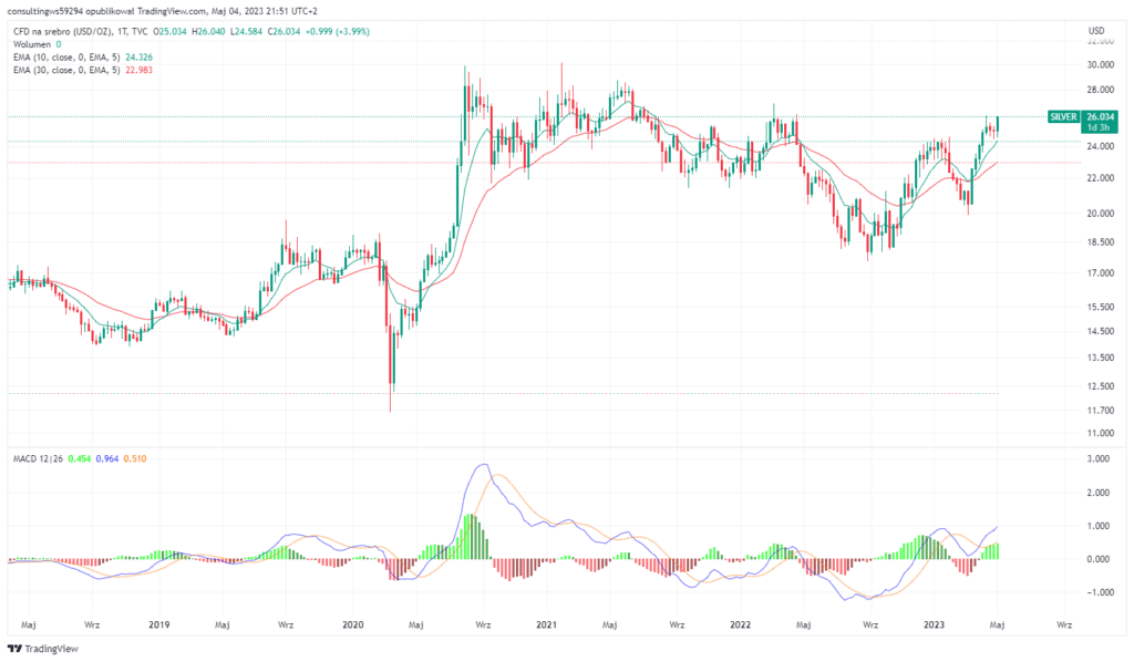 Srebro ma szansę dokonać tego co zrobiło złoto – osiągnąć nowe ATH. Brakuje mu jeszcze kilku około 20 % ale może to właśnie jest okazja do inwestycji lub /i spekulacji.