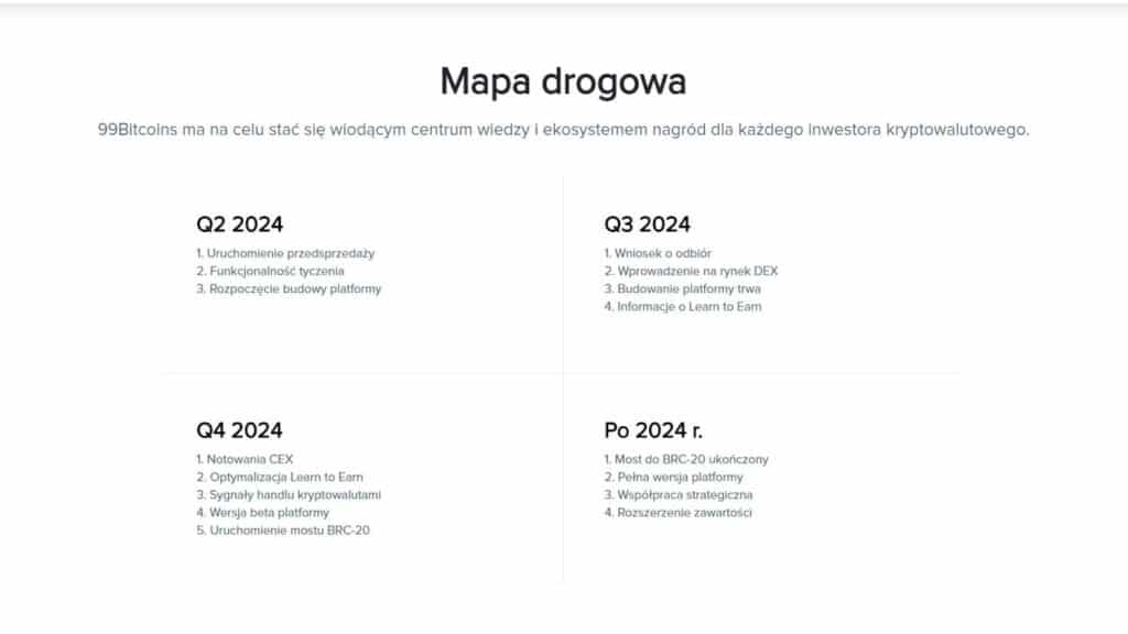 99Bitcoins ma ambitne plany rozszerzania swojej platformy i wprowadzania nowych funkcji, które poprawią komfort użytkowania. Fundusze zebrane podczas przedsprzedaży zostaną wykorzystane do opracowania dodatkowych treści edukacyjnych, ulepszenia interfejsu oraz wprowadzenia nowych narzędzi i zasobów do nauki o cyfrowych aktywach.