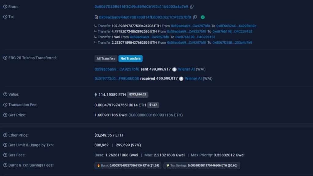 Wieloryb ten zdecydował się na ruch w ostatniej chwili. Kupił $WAI po obecnej cenie i prawdopodobnie uznał, iż WienerAI nie jest kolejną zwykłą monetą memową, ale technologią przyszłości, która uprości złożony świat handlu kryptowalutami i osiągnie ogromną wycenę.