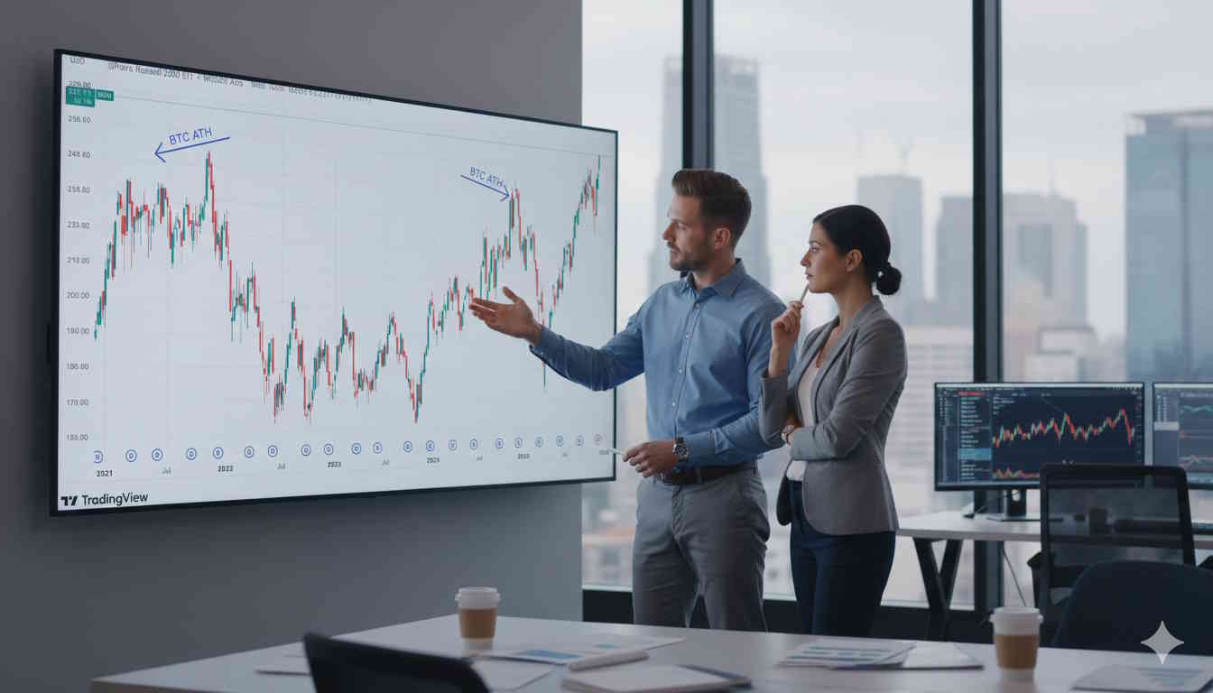 Indeks Russell 2000, będący miernikiem amerykańskich spółek osiągnął nowy szczyt, podczas gdy Bitcoin pozostaje daleko w tyle.