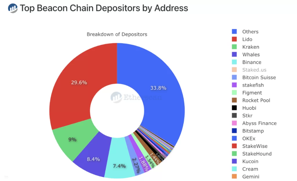 (źródło: link)Około 10 miliardów dolarów w ETH zgromadzone jest na 21 węzłach kontrolowanych przez Lido. Co prawda token Lido DAO pozwala zarządzać protokołem, jednak należy postrzegać Lido jako protokół w znacznym stopniu scentralizowany.