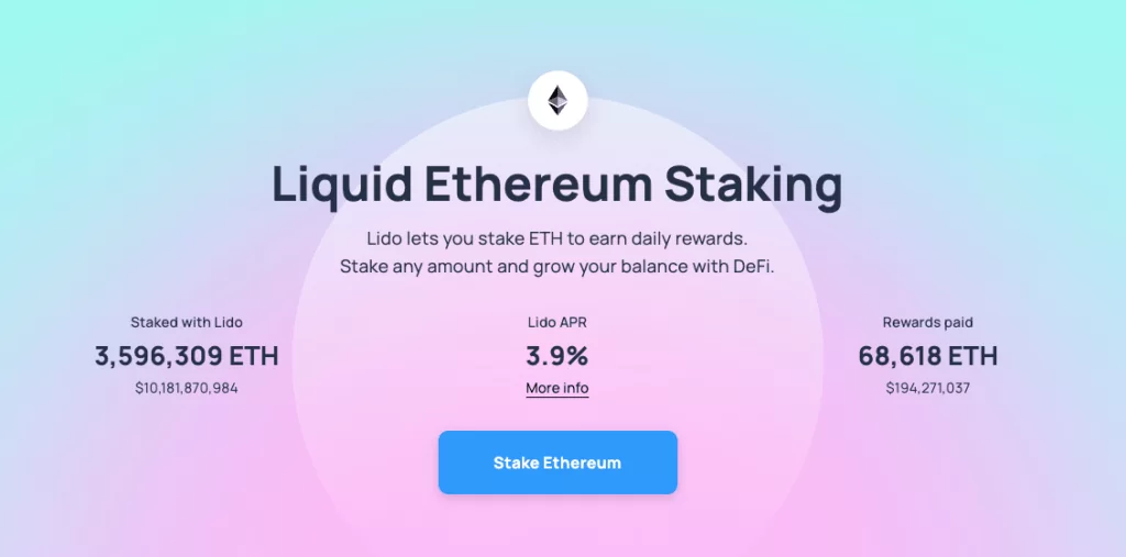 Jest to jeden z najpopularniejszych protokołów do stakowania swojego ETH. Zamiast samemu stawać się walidatorem węzła, deponujemy swoje ETH w Lido, które stakuje je za nas. Minusem takiego wyboru, jest całkiem spora opłata wynosząca 10% nagrody za stakowanie, jest ona dzielona pomiędzy operatora węzła, DAO oraz fundusz ubezpieczeniowy.