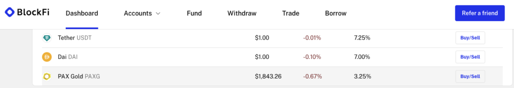 (źródło: link) - BlockFi oferuje zaś 7,25% APY na USDT, 7,00% na DAI.