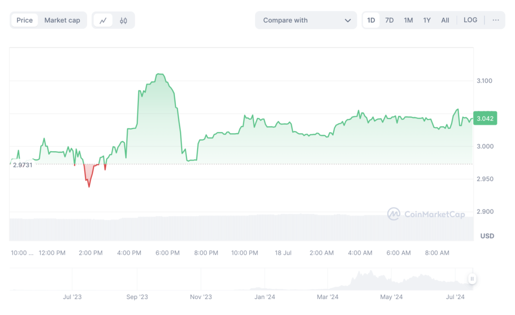 Cena PepeCoin wzrosła o ponad 11% w ciągu ostatnich 24 godzin. Token osiągnął poziom 3.11 USD i ponad 23% w ciągu ostatnich 7 dni.