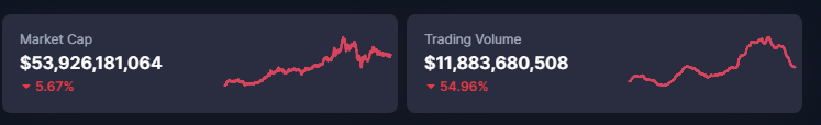 W chwili pisania tego tekstu kapitalizacja rynkowa memecoinów wzrosła do ponad 53 mld USD, ze spadkiem o 5% w ciągu ostatnich 24h i z maksimami osiągniętymi kilka dni temu w wysokości 64 miliardów dolarów.