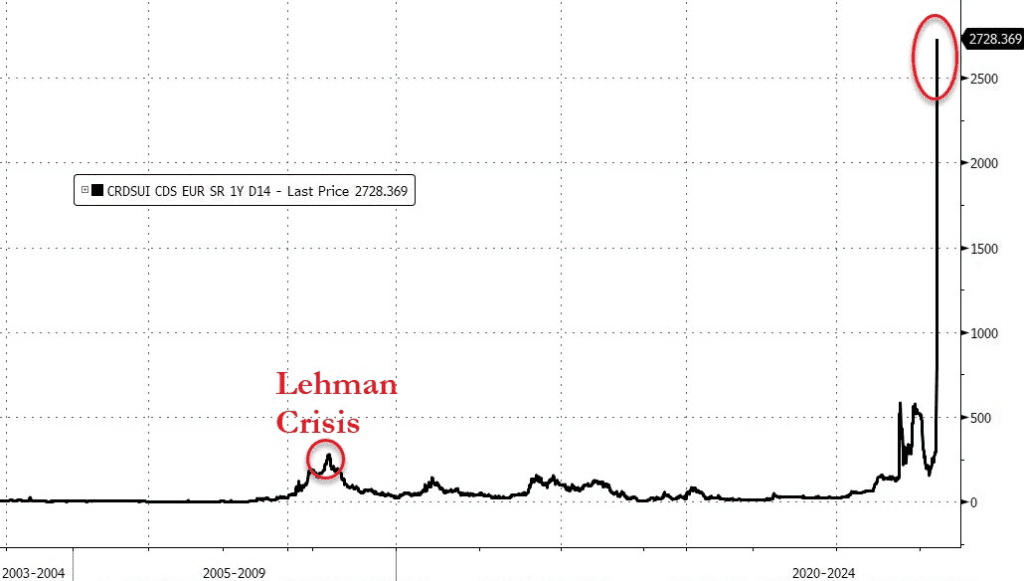 - Instrumenty CDS (Credit Default Swaps) można porównać do handlu ceną ubezpieczenia od pożaru domu swojego sąsiada. Gdy widać, iż zaczyna płonąć w nim ogień, cena ubezpieczenia rośnie. CDS-y Credit Suisse znajdują się w tej chwili na historycznych szczytach, w okolicach 565 punktów bazowych.