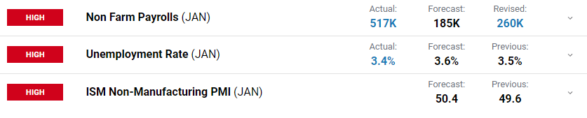 Stopa bezrobocia spadła w styczniu z 3,5% do 3,4% (prognoza: 3,5%), dane o indeksie ISM spłyną o 16:30.