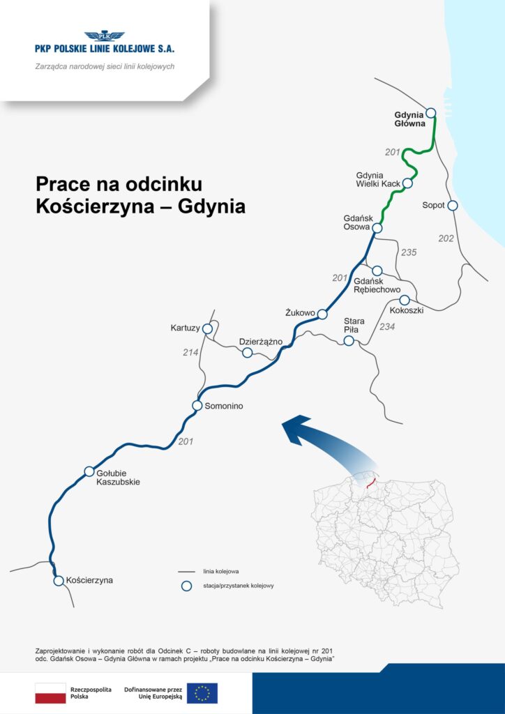 Prace na linii kolejowej nr 201 realizowane są od 2021 r. Od 2024 r. gotowy jest bajpas kartuski oraz zmodernizowana trasa nr 229 Glincz – Kartuzy wraz z nowym odcinkiem trasy nr 214 w obrębie stacji Kartuzy.