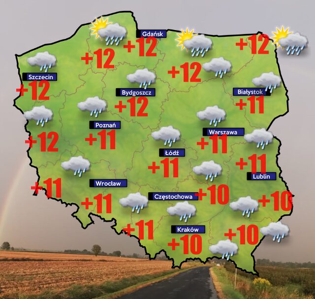 Po chłodnym początku miesiąca nie ma już śladu. Temperatura znacznie przekracza średnią a to zasługa ciepłych nocy z temperaturami na poziomie 8-12 stopni. Najbliższa noc także ciepła z temperaturą od 9 do 11 stopni- najcieplej na wybrzeżu a najchłodniej na wschodzie kraju. W wielu regionach popada mżawka.