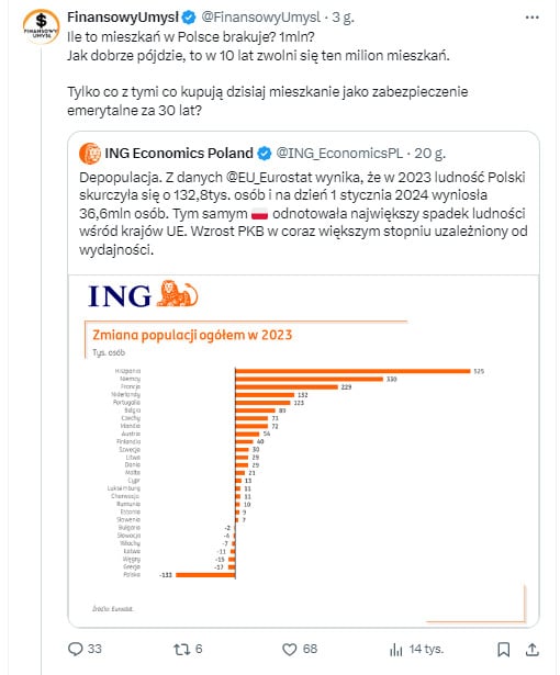 Ludność w Polsce spada w tym rok najszybciej wśród całej Unii Europejskiej. W 2023 spadła o 132,8 tys. osób rok do roku. To mniej więcej liczba ludności Płocka, z przyległymi do niego miejscowościami. Uważamy, iż to właśnie w nieoczywistych gwałtownie wyludniających się regionach promocje będą największe.