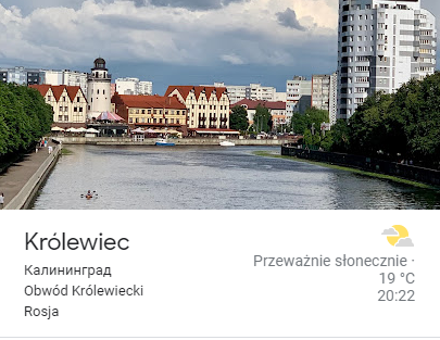 Leniwa i ciepła sobota to dobry moment na odetchnięcie od kryptowalut i zarazem poruszenie jednego z ciekawszych tematów ostatnich dni: okazuje się bowiem, iż na polskich mapach Google tzw. Obwód Kaliningradzki symbolicznie uległ zmianie i nosi w tej chwili nazwę Obwód Królewiecki. Z kolei stolica rosyjskiej enklawy na terenie dawnych Inflant to już nie Kalinigrad, a Królewiec. Data jest prawdopodobnie nieprzypadkowa: 9 maja to hucznie obchodzony w Rosji tzw. Dzień Zwycięstwa.