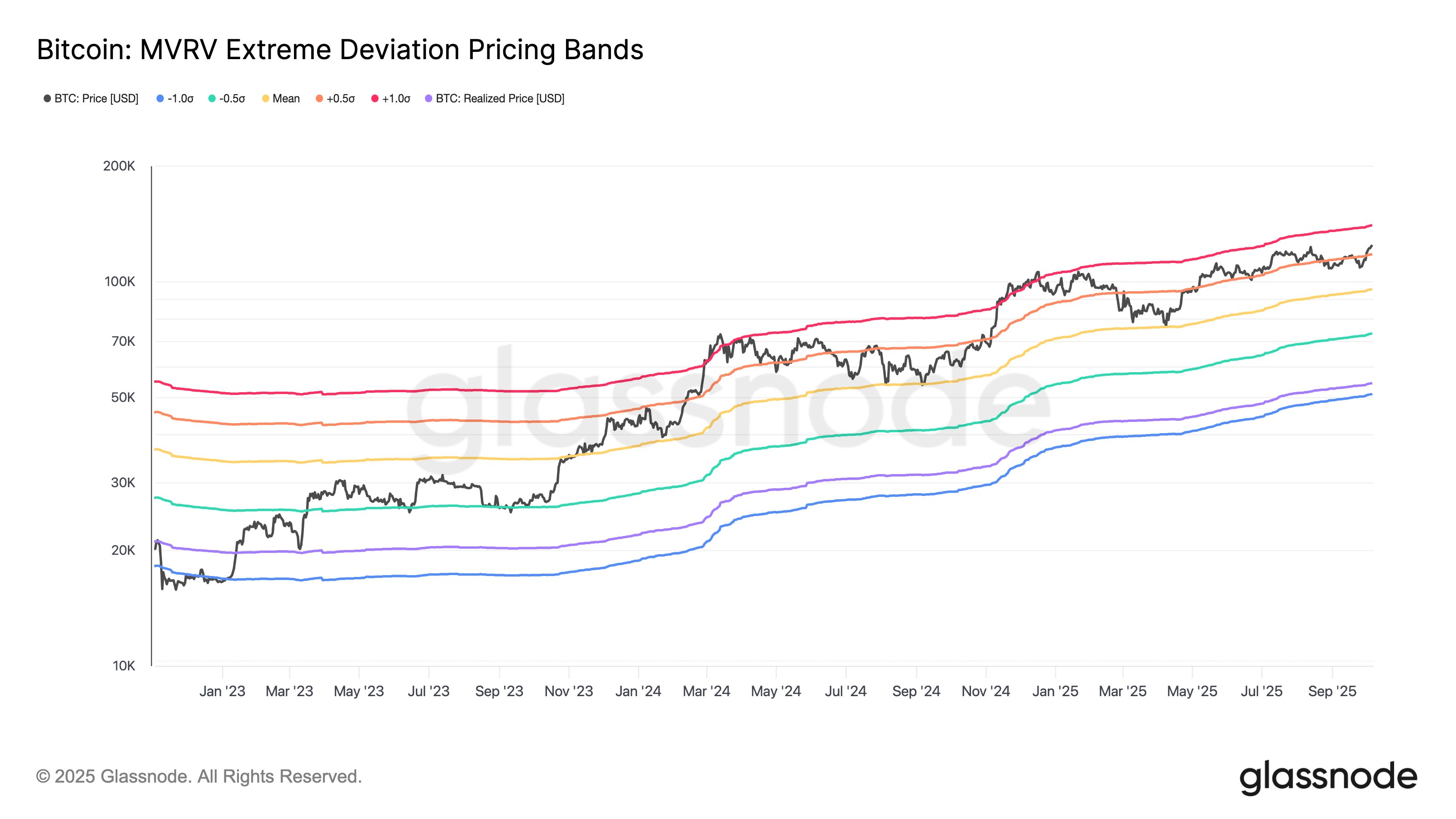 „Bazując na wskaźniku MVRV Extreme Deviation Pricing Bands, Bitcoin ma jeszcze pole do wzrostów, choćby do $140,000. Poprzednie lokalne szczyty miały miejsce właśnie na tej czerwonej linii.”