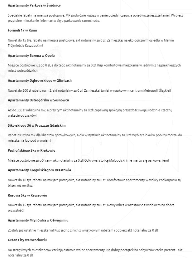 Grupa proponowała różnym nabywcom zakup udziałów w spółkach celowych powołanych przez grupę kapitałową HRE. Udziały po upływie z góry określonego czasu miały podlegać wykupowi przez podmioty z grupy po konkretnej cenie i z uwzględnieniem stóp zwrotu. O ile nie można winić grupy za stricte biznesowe niepowodzenia, o tyle dokładniejsze przyjrzenie się jej działalności jest istotne. Podobnie jak zaspokojenie ciekawości prywatnych udziałowców w spółkach… Którzy chcą wiedzieć, czy poczynione przez Grupę inwestycje mają jakiekolwiek szanse powodzenia i czy restrukturyzacja ma szansę ograniczyć ich 'ból’ finansowy. Na stronie grupy możemy wciąż znaleźć inwestycje, na które oferuje 'specjalne rabaty’. Oto ich lista.