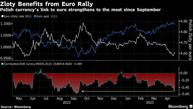 Według doniesień Bloomberga juz na początku maja analitycy Goldman Sachs ostrzegli przed spadkami złotego. Co prawda od tego czasu PLN jeszcze bardziej się umocnił. Biuro analiz GM wskazało, iż polska polityka stóp procentowych może być z czasem bardziej gołębia niż innych państw Europy Środkowej i Wschodniej. Analiza jednego z największego banku na Wall Street prognozuje, iż zwyżka polskiej waluty okaże się krótkotrwała. Istnieje ryzyko, iż przed wyborami parlamentarnymi w IV, RPP dokona „symbolicznej” obniżki stóp – zwłaszcza jeżeli inflacja zasadnicza będzie przez cały czas spadać. Traderzy instrumentów pochodnych dodali w zeszłym tygodniu więcej niedźwiedzich zakładów przeciwko złotówce. Aktualnie prawdopodobnie toną w stratach.