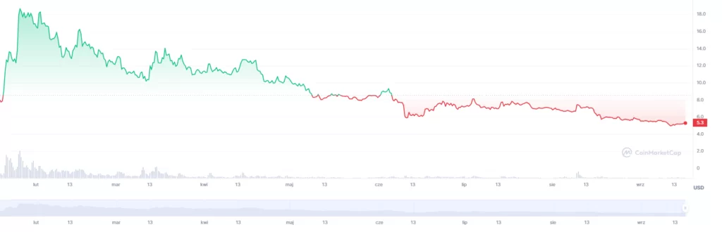 Wdrażanie świeżo odmrażanych tokenów ma się odbywać stopniowo. Początkowo, w listopadzie, wyemitowanych zostanie 5,83 mln tokenów APT, co odpowiada 32% średniego dziennego wolumenu obrotu. Odblokowania będą postępowały co miesiąc. W grudniu liczba ta ma wzrosnąć do 6,15 mln monet. Warto dodać, iż w przeciągu ostatniego roku regularnie odblokowywano ok. 4,62 milionów $APT miesięcznie, głównie na potrzeby społeczności i fundacji. Wpływało to ewidentnie na spadek cen.