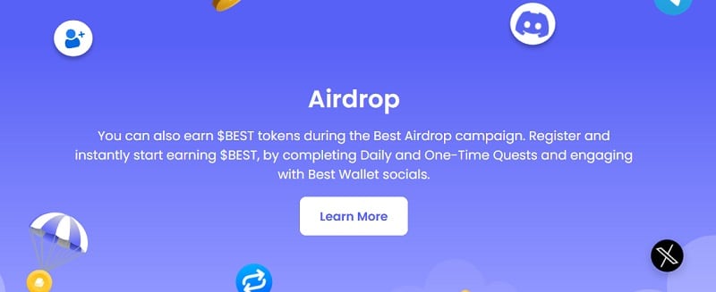 Wystarczy zarejestrować się w portfelu i zbierać punkty. Nie jest to trudne i skomplikowane, ponieważ w tym celu wystarczy wykonywać określone zadania. Następnie trzeba poczekać na airdrop, kiedy odbędzie się ogromny zrzut nagród w formie tokenów $BEST.