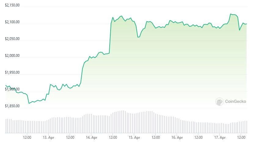 Od czasu hard forku Shapella 12 kwietnia, Ethereum odnotował wzrost cen o prawie 10%.