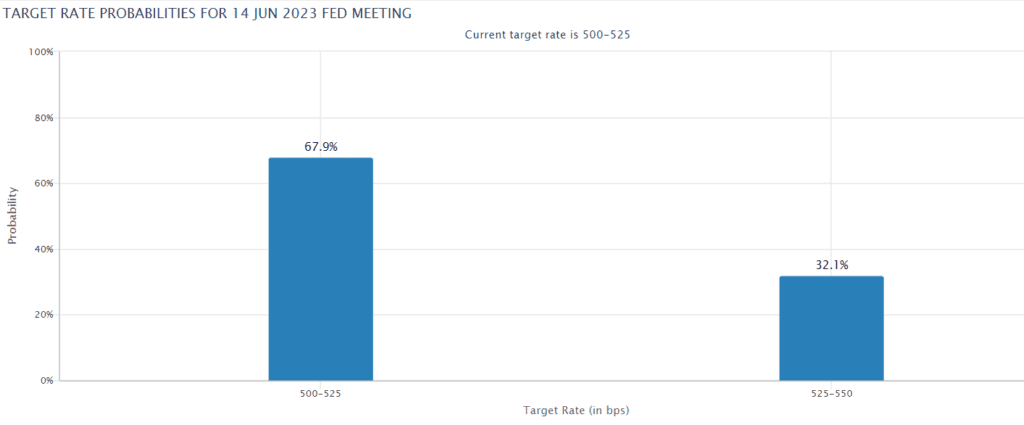Prezes BlackRock spodziewa się kolejnych podwyżek stóp procentowych Fed. Powodem jest oczywiście inflacja. Czy powiedział coś istotnego? Przekazał, iż inflacja w USA stabilizuje się w jego ocenie na zbyt wysokich poziomach. prawdopodobnie miał na myśli szczególnie inflację cen usług – ta wykazuje rekordową różnicę w realcji do inflacji w przemyśle. Rezerwa Federalna może być naprawdę zmuszona do dalszego podnoszenia stóp procentowych w celu powstrzymania presji cenowej. Mimo to oczekiwania rynkowe zakładają pierwsze cięcia bardzo szybko. choćby jesienią tego roku. A po wczorajszych wypowiedziach bankierów spekulanci dostregli szansę na brak podwyżki w czerwcu! Wall Street chce wierzyć, iż 'jastrzębia poza’ Powella to tylko blef?