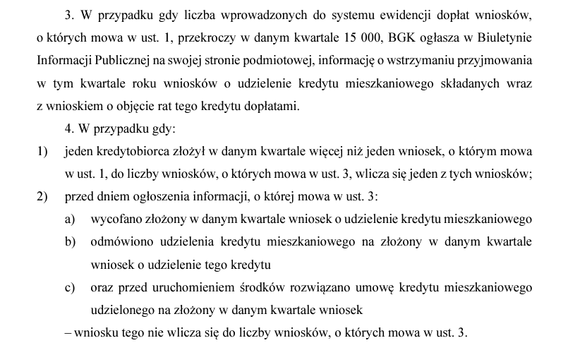 Dziś Ministerstwo w Rządowym Biuletynie Informacji opublikowało wyczekiwany od miesięcy projekt ustawy 'Mieszkanie Na Start’. Program ma zastąpić Kredyt 2% i może ruszyć od lipca 2024 roku. Przewidziano 35 tys. umów limitu w roku 2024, przy założonej płynności programu, do 2027 roku. W kwartałach od 2025 roku limity kwartalne mają wynosić 15 tys. i umożliwić równomierne rozłożenie popytu. Co zmieniło się względem poprzednio deklarowanych punktów programu? Na konsultacje publiczne przewidziano bardzo krótki okres czasu, wynoszący ok. 14 dni. Przypomnijmy, ustawę ma wciąż szanse 'podtopić’ prezydent Andrzej Duda. Ale czy zrobi to, mając świadomość, iż przecież poprzednia władza zdołała przepchnąć BK2% bez większych problemów? Ministerstwo zakłada, iż program zacznie obowiązywać aż 30 dni po opublikowaniu ostatecznej ustawy. Banki nie będą miały zbyt wiele czasu… Chyba, iż zapewni go podpis Prezydenta.
