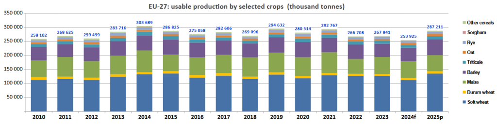 Tabela: Produkcja zbóż w UE – najważniejsze liczby (stan na 18.12.2025)