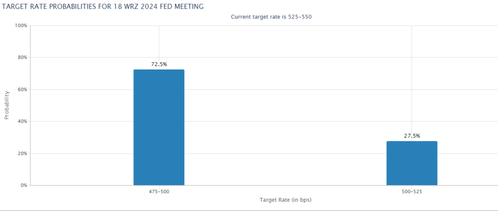 Ryan Lee zwraca uwagę w szczególności na jeden, najważniejszy czynnik, który może wpłynąć na ceny Bitcoina i Ethereum w sierpniu 2024 roku. Mowa o przewidywanych obniżkach stóp procentowych w USA. „Rynek szacuje 100% prawdopodobieństwo obniżki stóp procentowych we wrześniu, z dużym prawdopodobieństwem cięcia o choćby 50 punktów bazowych,” wskazuje Lee. o ile zmaterializuje się ten scenariusz, do rynku kryptowalut popłynie dodatkowa płynność z kierunku TradFi. „W szczególności kapitał ten przypłynie za pośrednictwem funduszy giełdowych ETF z BTC i ETH jako aktywami bazowymi” dodaje analityk.