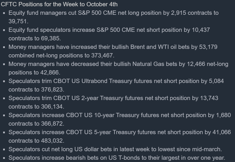 Rosnące CDSy, rosnący VIX, rosnące ceny obligacji korporacyjnych, ostatnie problemy sektora bankowego.Sezon wyników, który 13 października otworzy… BlackRock. Tak, zarządzający blisko 10 bln USD fundusz-gigant otworzy sezon. Jednocześnie jego analitycy ostrzegli w ostatniej nocie, iż rynek wciąż nie w pełni wycenia zbliżającą się recesję, co samo w sobie raczej nie napawa optymizmem wokół raportu finansowego. Istnieją obawy, iż rynki przygotowują się na coś większego, fundusze hedgingowe spodziewają się pogłębienia spadków: