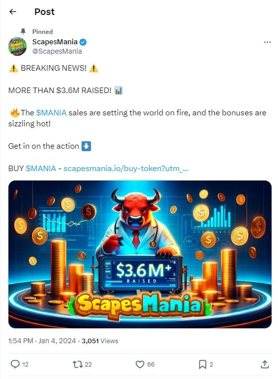 Jednym z nich jest ScapesMania, projekt, który zebrał już ponad 3 682 000 $, przy dziennych wzrostach od 65 000 $ do 117 000 $, gwałtownie zbliżając się do progu 4 mln $. Dzięki rosnącej popularności w czołowych mediach kryptowalutowych i poparciu ze strony kluczowych influencerów ScapesMania wyróżnia się jako obiecująca inwestycja dla tych, którzy chcą skorzystać z trendu wzrostowego na rynku.