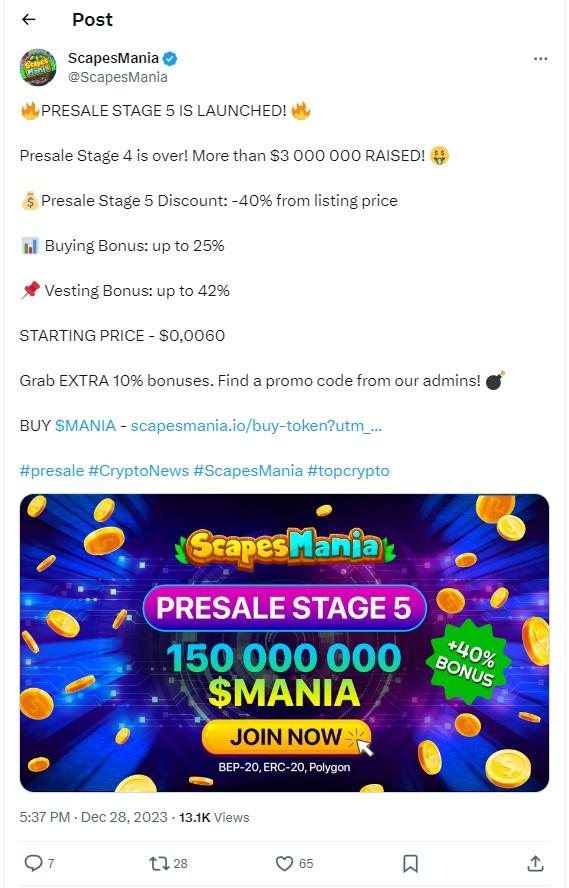 Biorąc pod uwagę te czynniki, ScapesMania jest nie tylko najlepszym wyborem dla entuzjastów kryptowalut; ma szansę stać się jednym z najgorętszych ICO w 2024 roku.