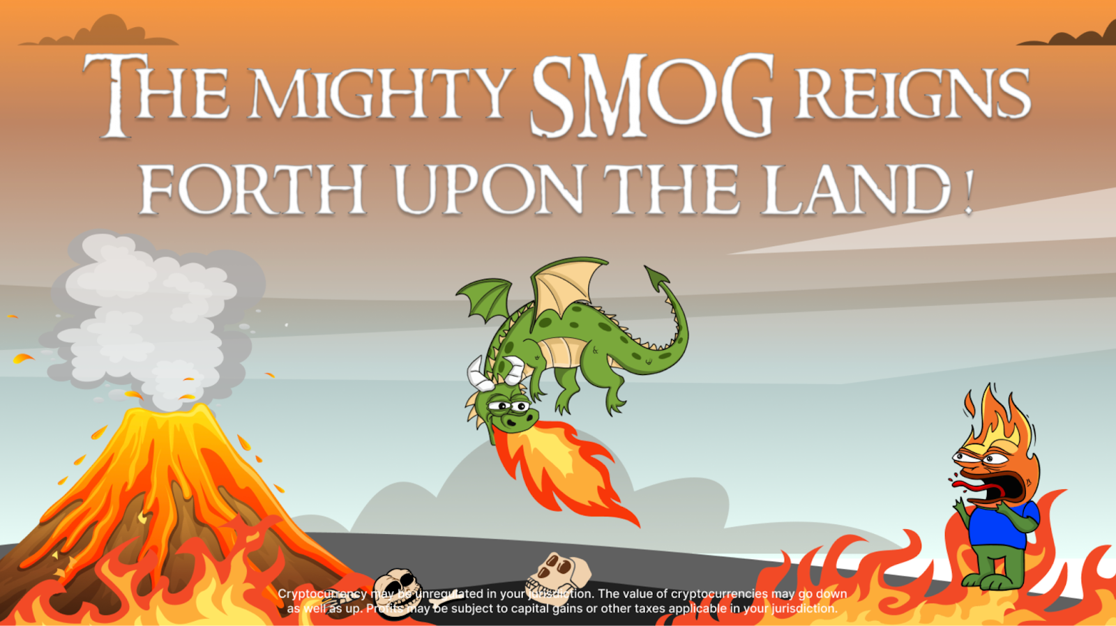 Smog to memecoin nawiązujący do historii rodem ze świata fantasy, który chce „podpalić” dotychczasowy świat monet memowych zdominowany przez Shiba Inu. Token $SMOG nie jest dostępny w przedsprzedaży, zamiast tego można go nabyć na giełdzie DEX.