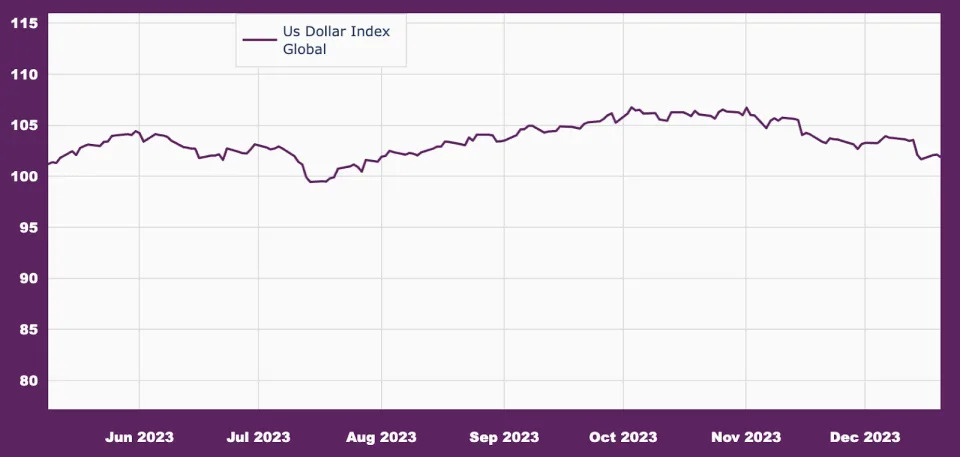 Indeks dolara traci i zbliża się do poziomu 100 punktów, odzwierciedlając rosnący apetyt na ryzyko.Zapasy aluminium w dół