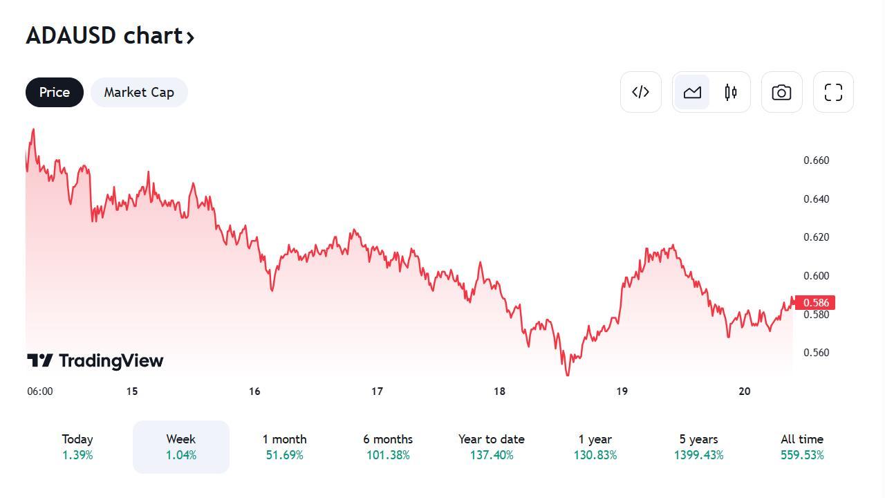 Całkowita zablokowana wartość Cardano (TVL) pozostaje wysoka i wynosi ponad 425 milionów dolarów. Ostatnio cena tokena wzrosła ostatnio o 11%, w związku z pozytywnym trendem Bitcoina. Jego przyszłość wydaje się optymistyczna, ale utrzymanie zysków i promowanie adopcji blockchain wśród zmienności rynku to najważniejsze wyzwania.