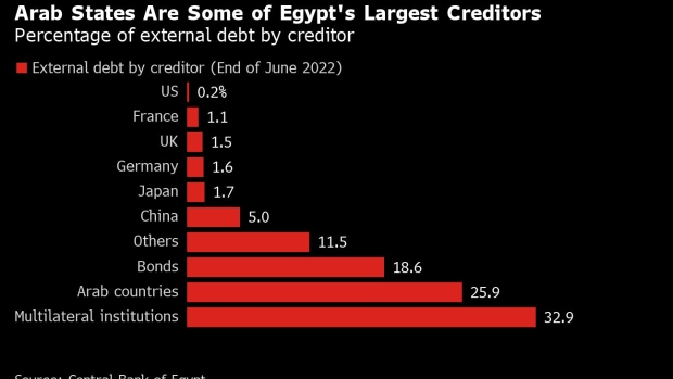 Największymi pożyczkodawcami Egiptu są kraje arabskie. To one mogą zostać w największym stopniu poszkodowane w scenariuszu totalnego załamania gospodarki. Źródło: BloombergTanie wakacje?