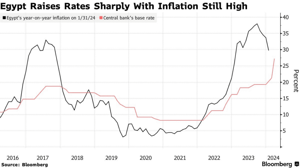 Egypt also raised interest rates by 6% this morning to 27.75%.