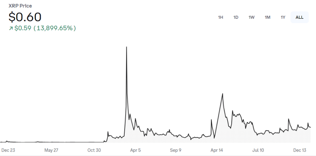 Na moment powstawania tego artykułu kurs XRP, waluty Ripple, wynosił 0,60 USD za sztukę.
