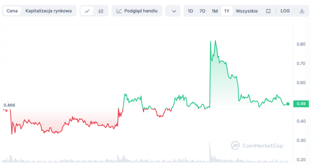 Wykres XRP z ostatniego roku. Źródło: coinmarketcapRipple był ostatnio w centrum uwagi ze względu na pozew Komisji Papierów Wartościowych i Giełd (SEC). Zarzucał on, iż XRP jest papierem wartościowym. Ripple odniósł duże zwycięstwo w procesie w lipcu, gdy sędzia uznał, iż XRP nie jest papierem wartościowym pod względem obrotu na giełdach kryptowalut.