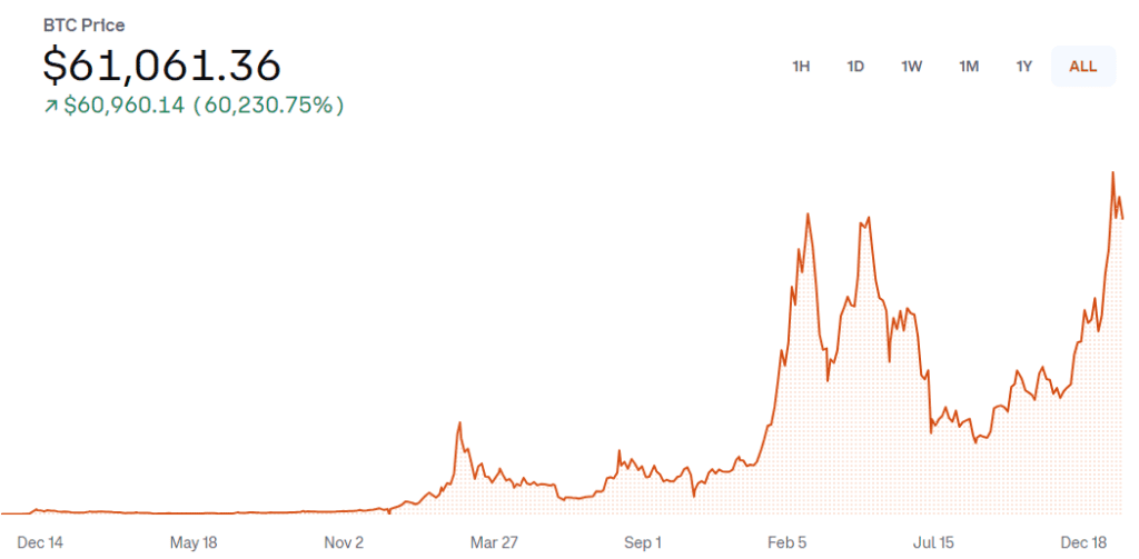 fot. X (Twitter)Na dzień 17 kwietnia 2024 r. Bitcoin osiągnął poziom ok. 60-61 000 USD za jednostkę, uwzględniając już aktualną korektę (maksima są bliżej 72 tys. dolarów za monetę). Tak dramatyczny wzrost oznacza, iż początkowa inwestycja w Bitcoina o wartości 1000 USD w 2017 r. byłaby w tej chwili warta około 14 593 USD, aż piętnaście razy więcej.