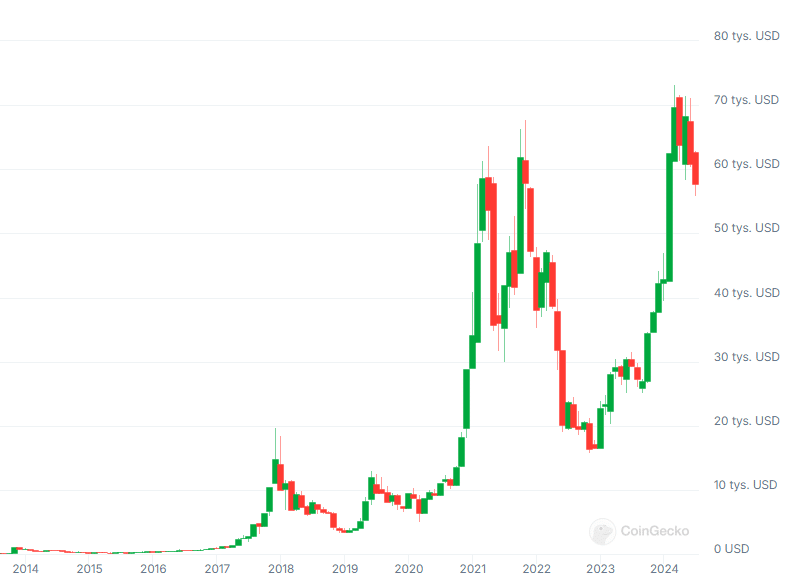 Zdaniem Roberta Kiyosakiego kolejna hossa może podnieść wartość największej kryptowaluty do aż 1 miliona dolarów za pojedynczą monetę. Aktualnie cena Bitcoina wynosi ok. 57 800 USD za sztukę.