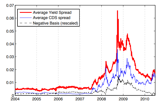 Widzimy, iż wzrost CDS w latach 2007 – 2010 korelował z rynkiem obligacji, co również obserwujemy dzisiaj. Wykres pokazuje rozpiętość rentowności 5-letnich obligacji oraz rozpiętość CDSów 15 pośredników finansowych najbardziej aktywnych na rynku CDS w latach 2007-2010. Źródło: Credit Default Swap Spreads and Systemic Financial Risk, Stefano GiglioStraty, straty