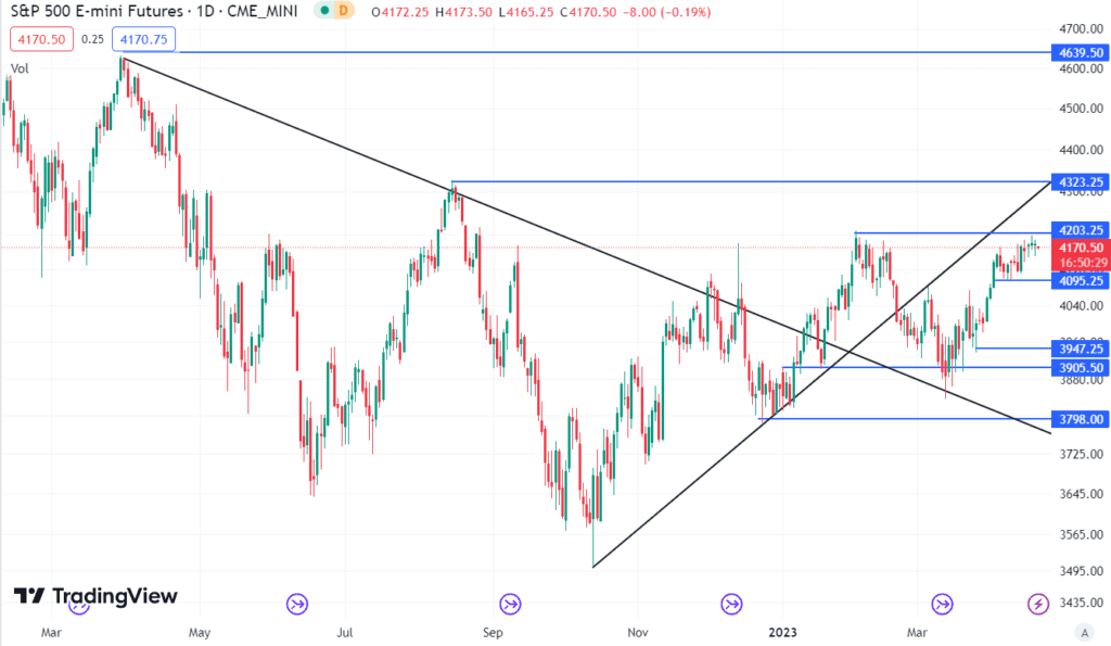 Od początku kwietnia S&P 500 konsoliduje się blisko maksimum z 2 lutego 2023 roku (4 208 punktów). Sytuacja jest patowa. Żadna ze stron nie potrafi przejąć kontroli na więcej niż kilka sesji.