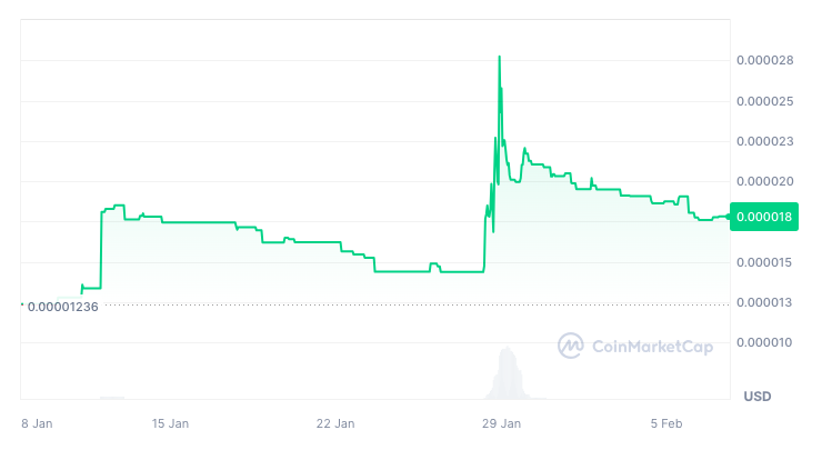 W czasie tego skoku cen, kapitalizacja rynkowa $SAUDIPEPE osiągnęła imponujący próg prawie 15 milionów dolarów. w tej chwili cena wynosi około 1,37 miliona dolarów. Niestety, spadki w pierwszym tygodniu lutego powstrzymały token przed wspięciem się na oczekiwany przed traderów poziom.