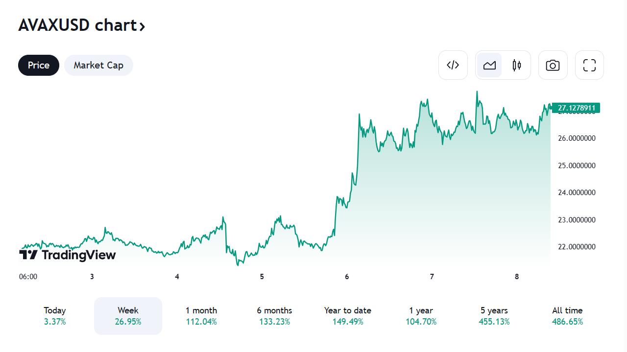 Avalanche (AVAX) odnotowała znaczący kamień milowy ze wzrostem o 105%, dzięki czemu znalazła się w pierwszej dziesiątce kryptowalut pod względem kapitalizacji rynkowej.