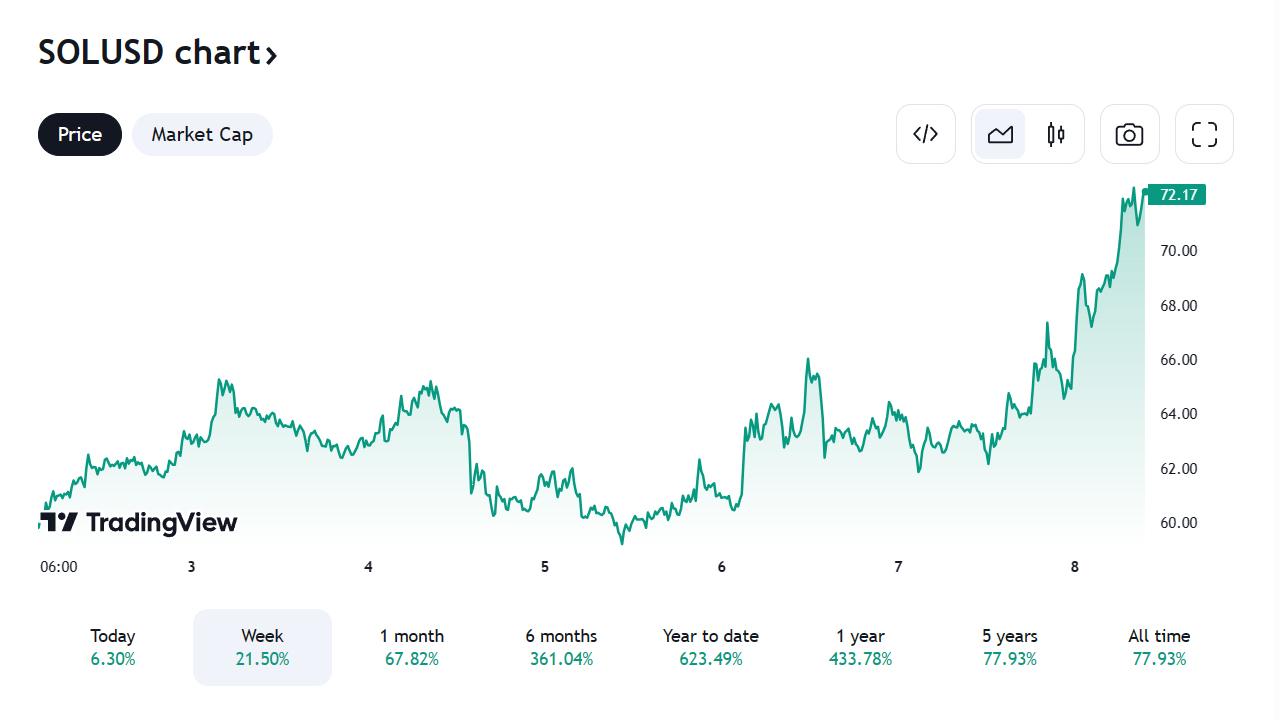 Gwałtowny wzrost cen Solany (SOL) odzwierciedla rosnące zaufanie inwestorów do możliwości Solany w zakresie handlu w łańcuchu, zaciągania pożyczek, udzielania pożyczek i generowania zysków.