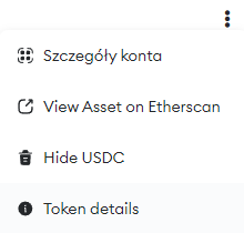 W tym celu wyszukujemy adres kontraktu naszego tokena USDC (można go znaleźć klikając na token w MetaMasku i wybierając z menu w prawym górnym rogu opcję „Token details„):
